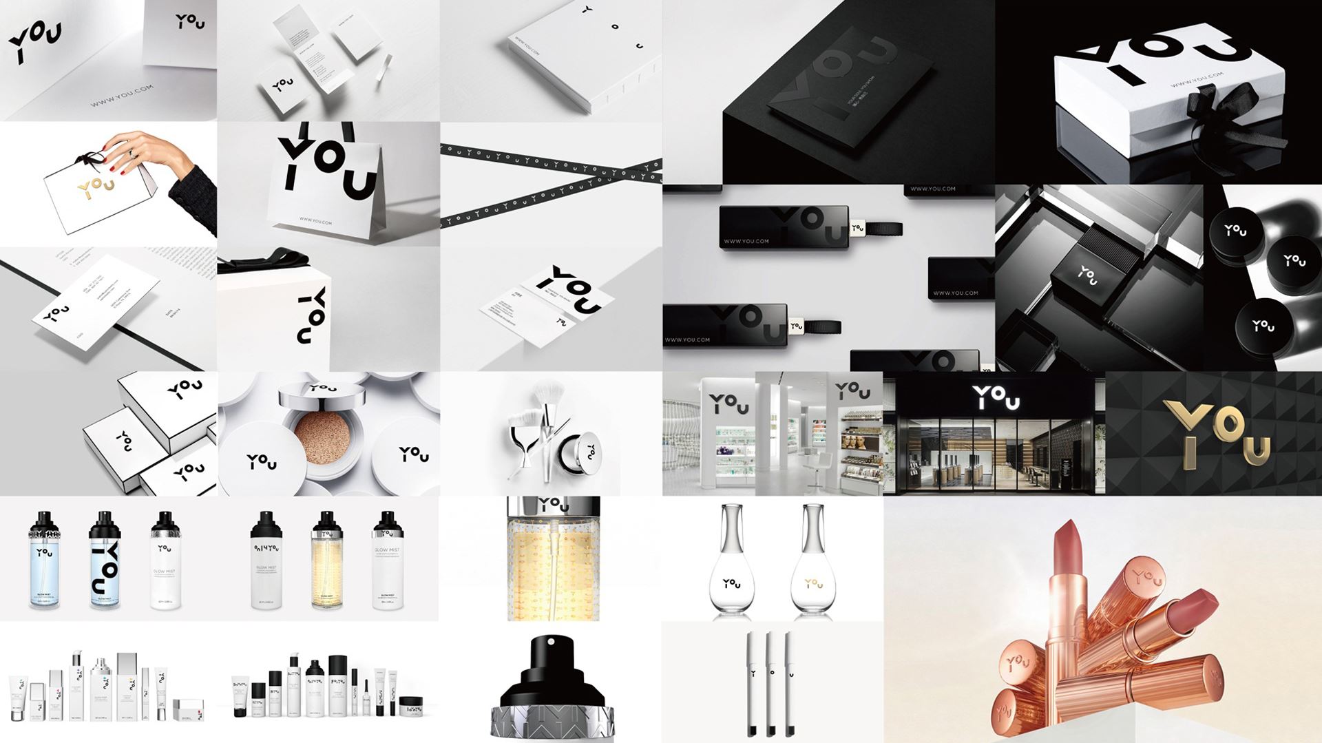标志将YOU图形化处理,“Y”的分解与“O”、“U”的位置变化相呼应,j9九游会使整体展现出灵动的时尚感,分散开又是单一的几何图形,具备相当的可延展性,独特的视觉表达让YOU更具备识别力,同时满足化妆品行业时尚轻奢国际化的气质。